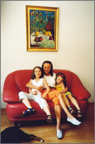 Мечта сбылась. Мы можем спокойно сидеть и греться у камина. Жена с двумя внучками. Юлия и Ксения. 2002.