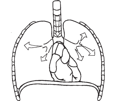 Тип дыхания, при котором всасывание воздуха в легкие производится только за счет диафрагмы, называется брюшным. Брюшное дыхание неглубокое и «проветривает» легкие не полностью.