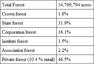 A new relation, however, of a conservative character arose by the establishment of the entail, i.e., a contract made by the head of the family with the government under which the latter assumes the obligation of forever preventing the heirs from disposing of, diminishing, or mismanaging their property. As a result of this arrangement, many of the larger private forest properties are forced to a conservative management, not as a direct influence of the law, but as a matter of agreement. The condition of state supervision of private and communal forest property at present prevailing is expressed in the following statement of divisions by property classes of forest areas of Germany, which shows that at least 63.9 % are under conservative management: