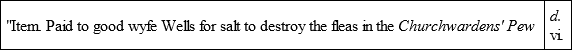 "1617. Barnham contra Hayward Puellam. – Presentatur – for that she being but a young maid sat in ye pew with her mother, to ye great offence of many reverent women: howbeit that after I Peter Lewis the Vicar had in the church privately admonished her to sit at her mother's pew-door, she obeyed; but now she sits with her mother again." —God's Acre, by Mrs. Stone.