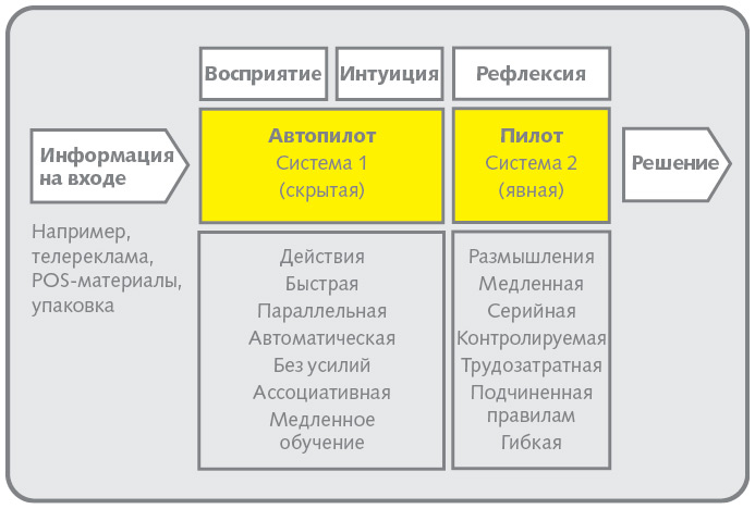 При принятии любого решения действуют две системы: скрытая от сознания система работает в качестве автопилота, а явная система выполняет функции пилота.
