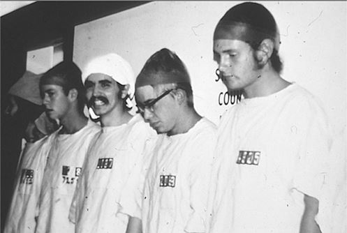 К счастью, в это воскресенье в Пало-Альто не зафиксировано никаких правонарушений, ни одна кошка не застряла на дереве, и Боб с Джо успевают спокойно закончить все аресты, строго по форме. К середине дня все «заключенные» зарегистрированы, перевезены в нашу тюрьму и оказываются в нетерпеливых руках новоявленных «охранников». Этим ребятам предстоит покинуть солнечный рай Пало-Альто и спуститься по небольшой бетонной лестнице в подвал здания факультета психологии, Джордан-холл, на Серра-стрит. Для некоторых это будет дорога в ад.