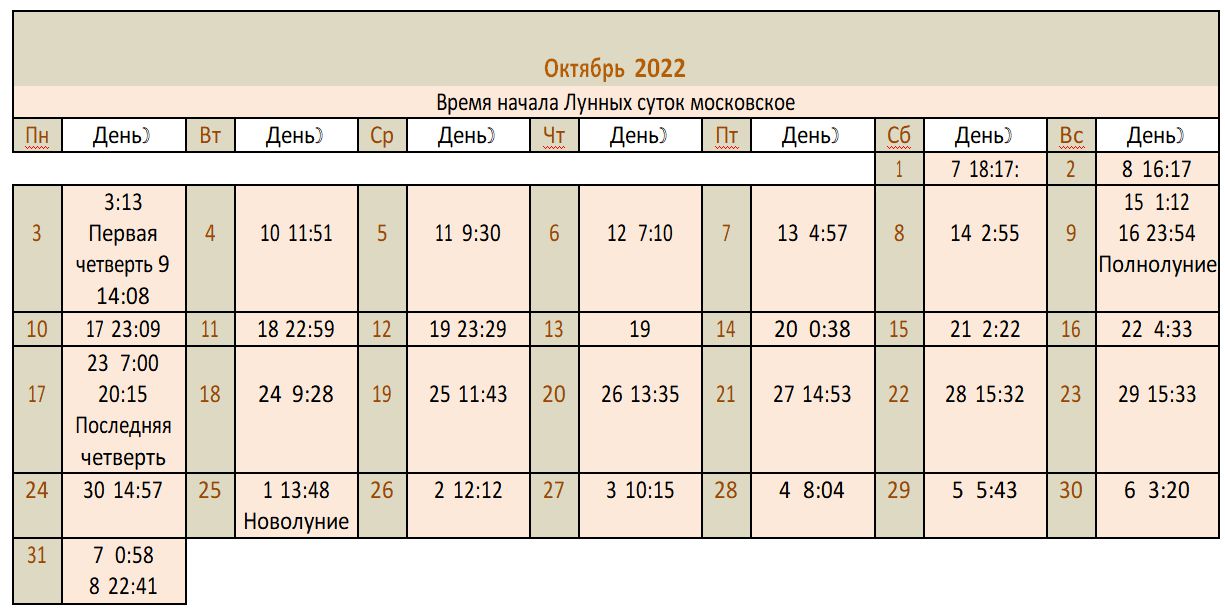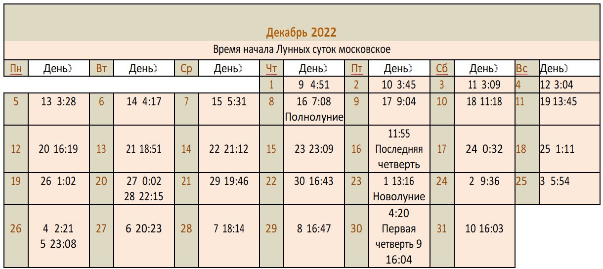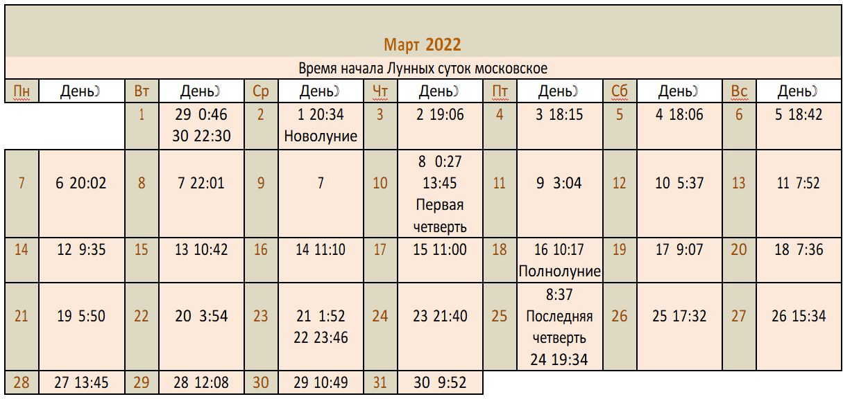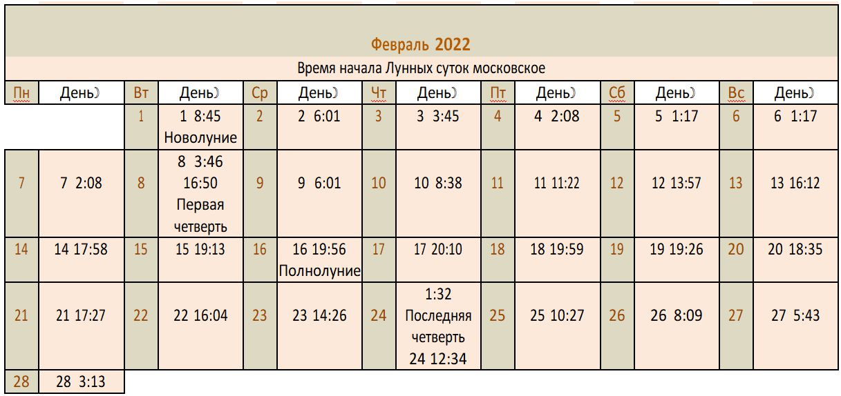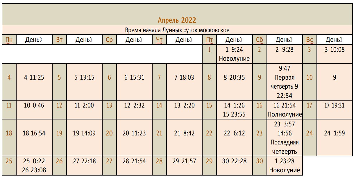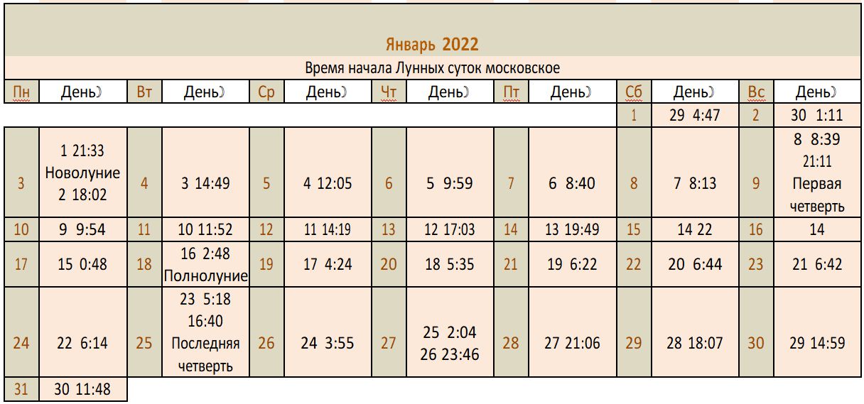 Лунный календарь 2022