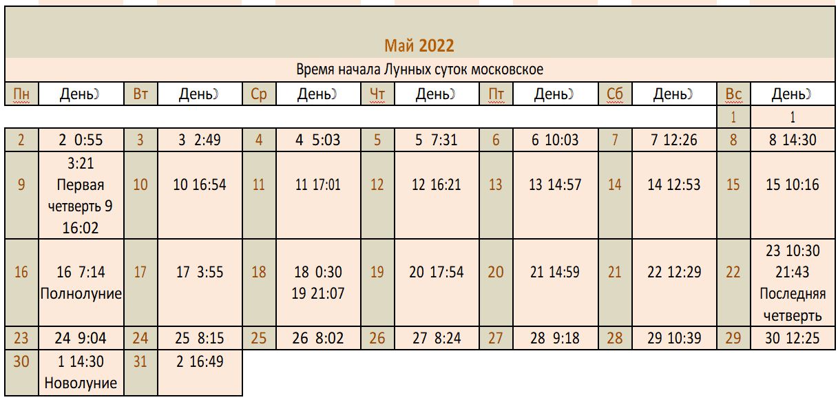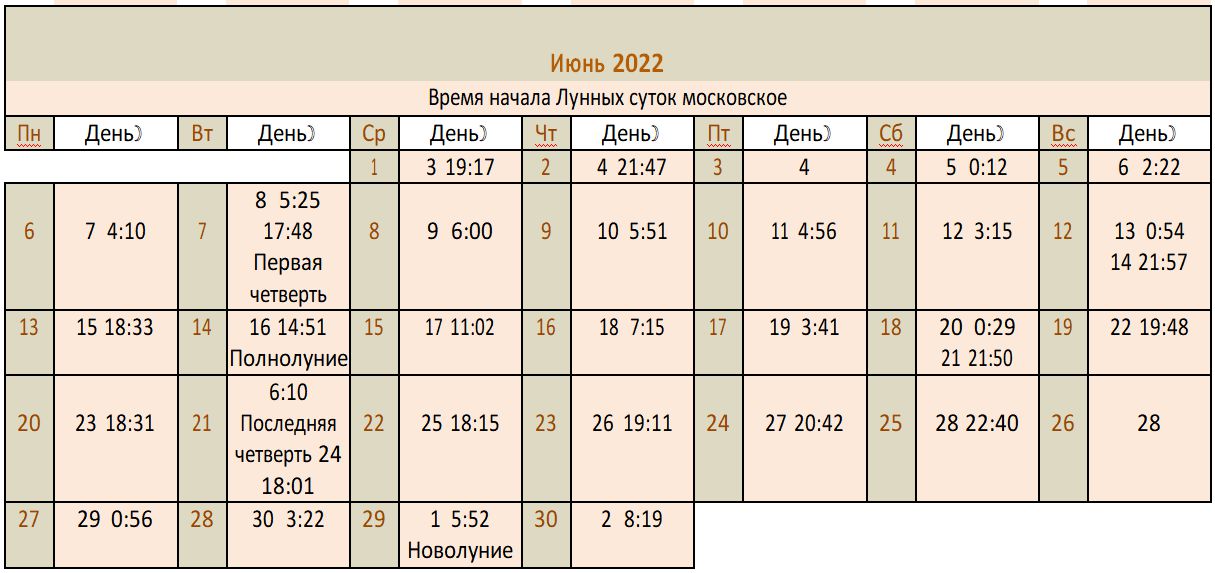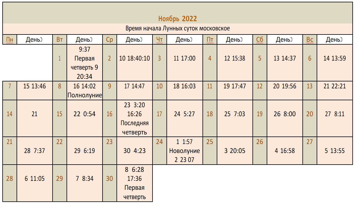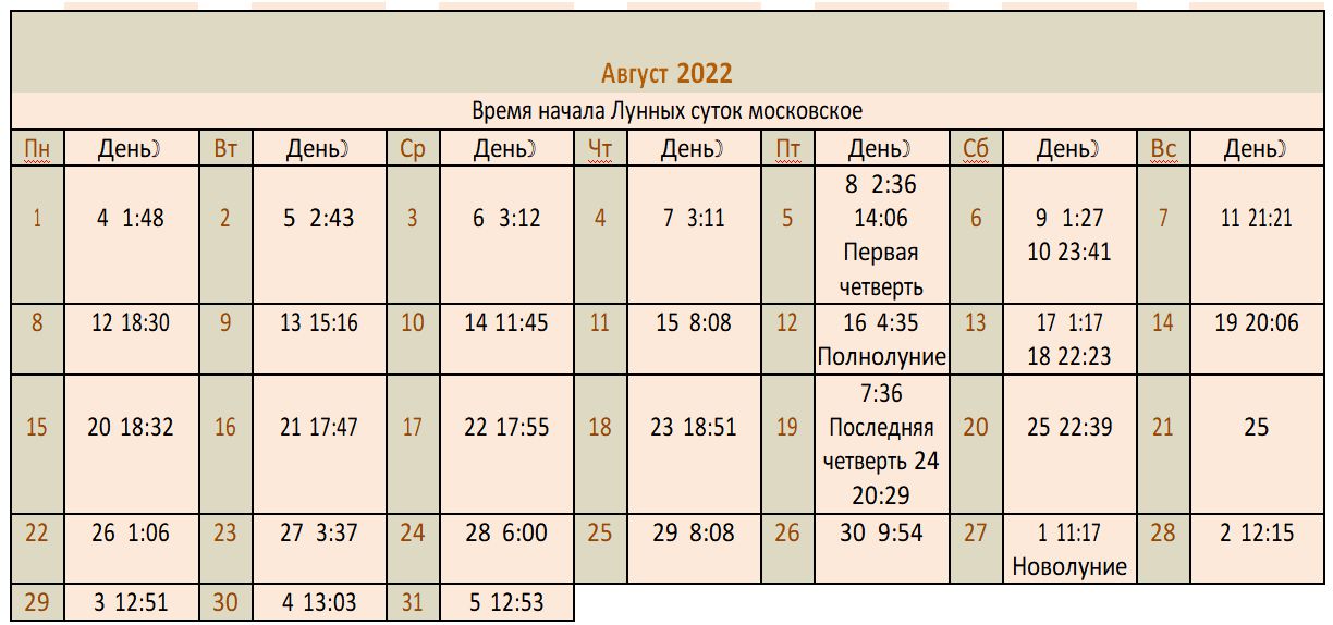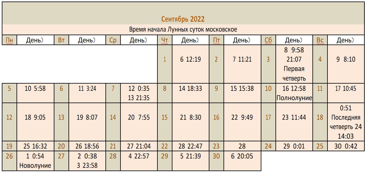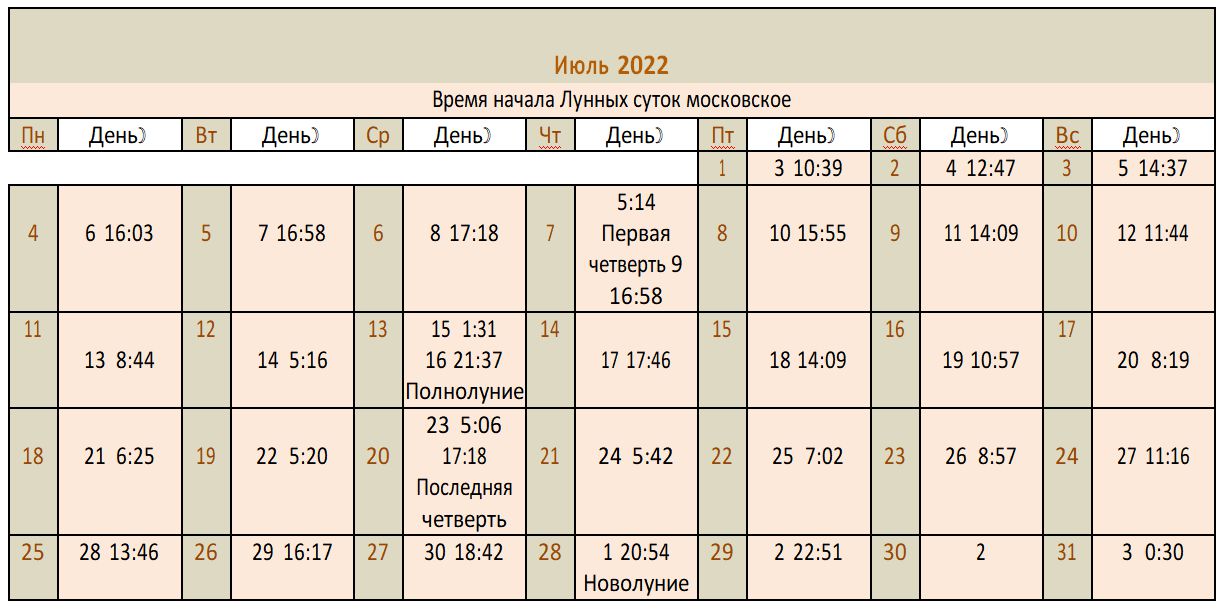 Лунный календарь 2022