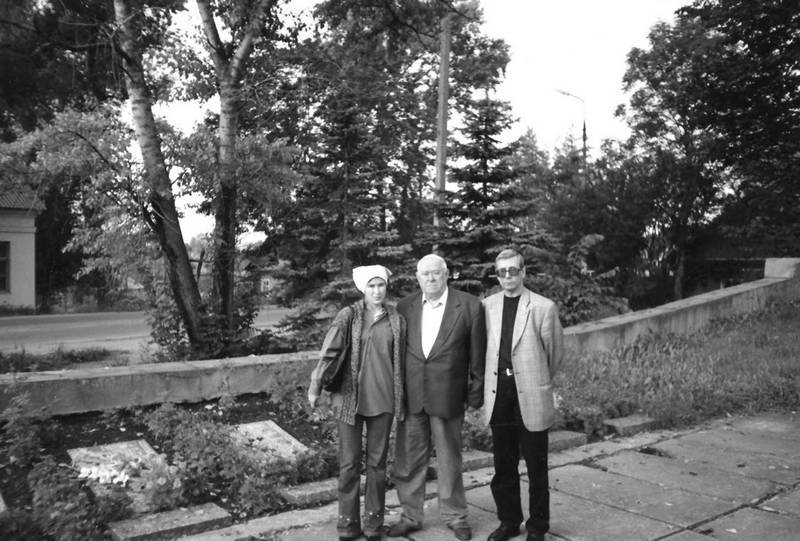 Филипп Денисович Бобков у могилы своего отца Дениса Никодимовича Бобкова, погибшего в мае 1944 г. под Новоржевом, с сыном Алексеем (вверху), с внучкой Дарьей (внизу)