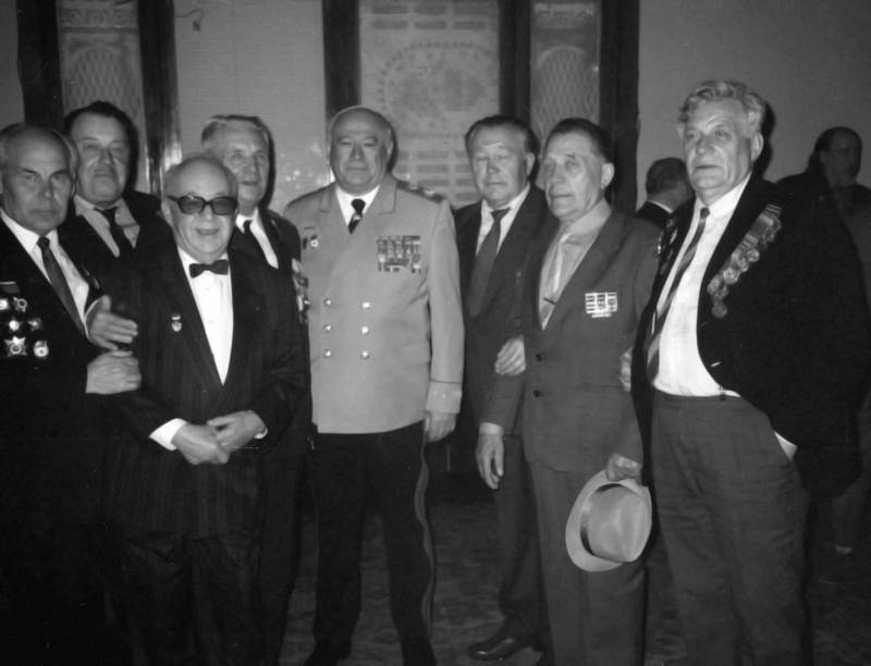 Ф. Д. Бобков с ветеранами Великой Отечественной войны (май 1991 г.). Третий слева – Народный артист СССР, композитор Н. В. Богословский, автор широко известной песни «Темная ночь»