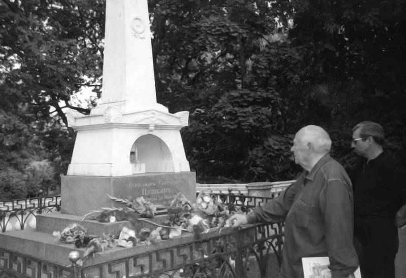 У могилы А. С. Пушкина (Михайловское, август 2002 г.)