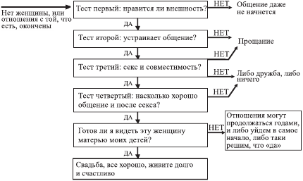 Это делается для одного четвертого пункта. Он настолько непонятен обычному смертному мужского пола, что я просто скажу – он есть. И называется он «сравнение». То есть девушка сравнивает по куче параметров своего постоянного партнера и вновь обретенного. Куча этих параметров описана в разделе «Модель ста баллов», и за подробностями я отсылаю к внимательному изучению этого раздела.