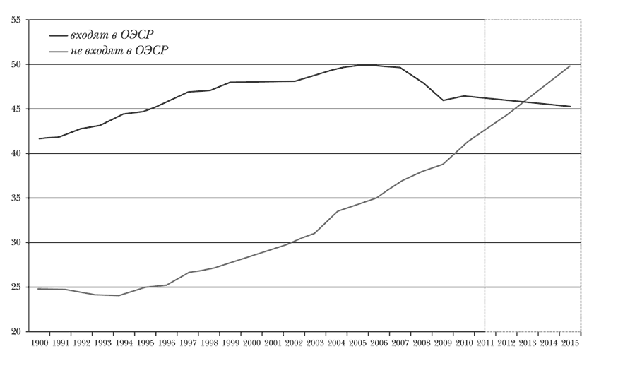 Источник: Составлено авторами на основе данных из: BP Statistical Review 2011 (для 2011–2015 гг. – оценка авторов)