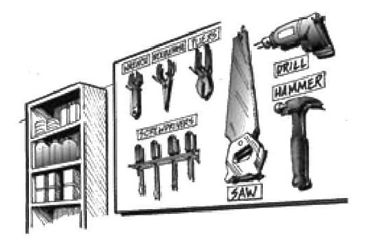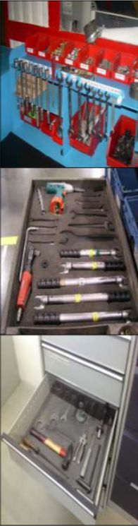 Часто мы можем видеть такие примеры в различных источниках (см. рисунок выше). Если такое размещение позволяет рабочему быстро увидеть и использовать предмет и потом быстро положить на место, то это вполне хорошее решение.