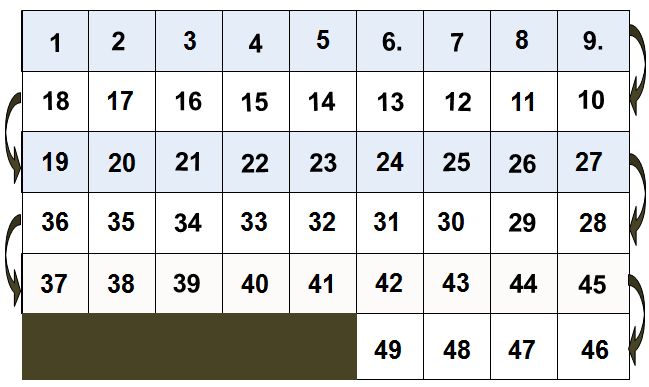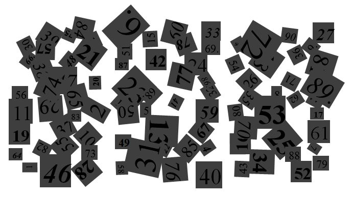 В завершение оставим вам задачу. Посмотрите на первый рисунок, расположенный ниже. Попробуйте найти на нём 3 любые цифры, например, 2, 39 и 26. Засеките время, которое это займёт.