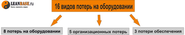 Применительно к работе оборудования, по разным классификациям различают от 6 до 16-и видов потерь. Мы рассмотрим самую широкую и подробную классификацию, чтобы охватить все нюансы работы оборудования.