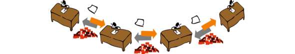 Это означает, что отдельные этапы процесса имеют неодинаковую загрузку. Наблюдается везде и происходит потому, что при работе с информацией достаточно сложно оценить объёмы отдельных работ. Кто-то работает быстрее, кто-то медленнее, кто-то обрабатывает несколько документов в день, а кто-то сотни, кто-то встречается с большим количеством ошибок и исправлений, а у кого-то их нет. Это естественная ситуация, в которой достаточно сложно равномерно выровнять загрузку. Как следствие возникают «узкие места», перегрузы и простои. Более подробно о том, как можно повлиять на неравномерность и максимально выровнять загрузку мы поговорим далее.