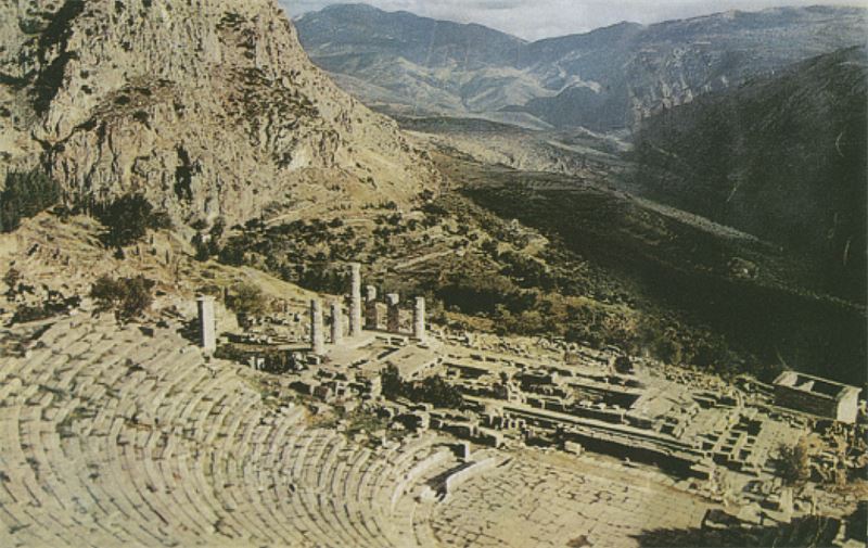 Феспис ввел великое новшество: отделившись от хора и изображая бога или героя, чьи деяния прославлял хор, он вступил с ним в диалог. Таким образом, первый театральный директор стал заодно и первым актером. Сегодня нам трудно в полной мере оценить радикальность предпринятого им шага: ведь Феспис стал первым непосвященным, дерзнувшим выступить от имени божества. Если раньше на это имели право лишь жрец и царь, обожествляемый в силу своего статуса, то теперь открылся путь для независимого развития актерского ремесла, которое вскоре потребовало соответствующего архитектурного обрамления. Первые греческие театры, вроде театра в Дельфах [4], возводились возле храмов. Они по-прежнему оставались местом священного богослужения, но исполнение самого действа отныне поручалось людям, для которых перевоплощение стало светской профессией: «слугами Диониса» их называли, просто отдавая дань традиции. Изменилась и аудитория. Эволюционировав из собрания паствы в коллектив зрителей, публика начала судить драму – о чьем культовом значении, однако, она хорошо помнила – по законам искусства, а иногда и развлечения.