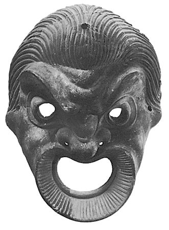 Одеяние комического актера гораздо меньше сковывало движения, ведь помимо драматической игры он должен был исполнять акробатические номера. Чаще всего исполнитель комедии носил мягкие туфли (сокки), трико телесного цвета и короткую тунику с гротескными толщинками [10, 13]; в комедиях времен Аристофана этот костюм дополнялся большим кожаным фаллосом красного цвета. Ради усиления комического эффекта маскам были приданы гипертрофированные черты [11]. Спутники Диониса в сатировой драме облачались в короткие меховые штаны, пристегивая к ним спереди фаллос, а сзади – хвост.