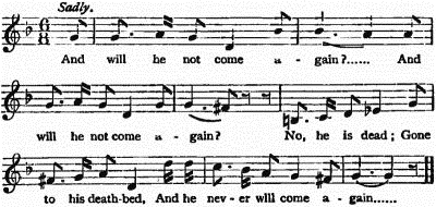 Unfortunately when Drury Lane Theatre was burnt down in 1812, the music library was destroyed. Happily, however, Mrs. Jordan, the celebrated actress with whose fame the part of Ophelia is for ever associated, was alive, and was able to sing to Dr. Arnold, a famous musician of the time, the melodies, as they had been rendered in the theatre in her time, and probably for centuries past.