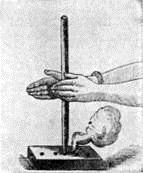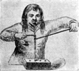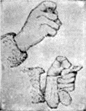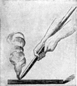 FIG. 2. – PRIMITIVE FIRE-MAKING. THE STICK-AND-GROOVE METHOD.