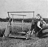 But even the excellent American cradle-scythe could not meet the needs of the American farmer. The cast iron plow which was brought into use in the early part of the nineteenth century (p. 82) made it possible to raise fields of wheat vastly larger than had ever been raised before. But it was of no use to raise great fields of grain unless the crop could be properly harvested. Wheat must be cut just when it is ripe and the harvest season lasts only a few days. If the broad American fields were to be plowed and planted there would have to be a reaping machine that would cut the grain faster than human hands could cut it with the scythe (Fig. 6).