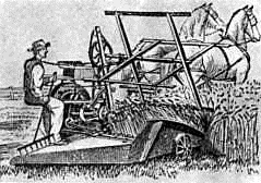 English inventors did much to prepare the way for a good reaping machine but the first really successful reaper, the first reaper that actually reaped, was made in the United States. In the summer of 1831, Cyrus McCormick, a young blacksmith living in the Shenandoah Valley in Virginia, made a trial of a reaper which he and his father had invented – how much they had learned from Ogle we do not know – and the trial was successful (Fig. 9). With two horses he cut six acres of oats in an afternoon. "Such a thing," says Mr. Casson in his life of McCormick, "at the time was incredible. It was equal to the work of six laborers with scythes or twenty-four peasants with sickles. It was as marvelous as though a man had walked down the street carrying a dray horse on his back."