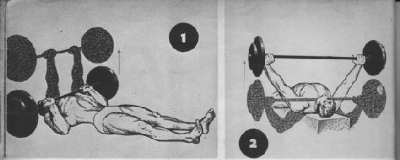 Lâexercice représenté ci-dessus est un des meilleurs pour le dos. Il peut être exécuté soit avec le tremplin adapté, soit en pointant et bloquant lâextrémité du balancier dans un coin de la salle où tu tâentraînes et en chargeant lâautre extrémité avec le poids qui dois tâentraîner.