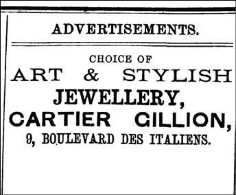 Когда Альфред пришел к Ворту в 1870-х годах, то хотел просить его выставить несколько украшений в витринах на Рю де ла Пэ за небольшую комиссию. Ворт согласился, и Картье получил доступ к огромным состояниям тех, кто часто приезжал в Париж, особенно – американцев. Построившие свой бизнес с нуля промышленники и банкиры из-за Атлантики имели состояния, готовые поспорить со «старыми деньгами» европейских аристократов. И у Альфреда появилась идея: рекламировать свою фирму в англоязычных газетах. В период с мая 1878 года по январь 1884-го он опубликовал более 100 рекламных объявлений Cartier Gillion в субботнем приложении к American Register, первой американской газете в Париже.