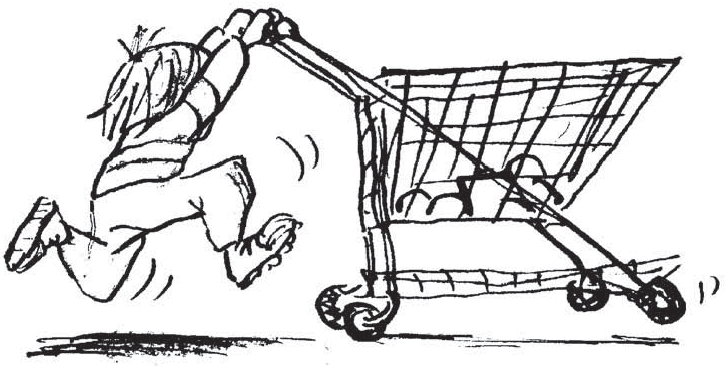 Через полчаса Ужасный Генри с хмурым видом таскался за мамой по супермаркету «Удачная покупка». Сначала она поручила ему толкать тележку, но Генри с разбегу врезался в толстого дяденьку, и мама решила, что безопаснее вести тележку самой. Потом она увидела, что Генри подсовывает чипсы и газировку, и заставила его всё выложить обратно. «Ну и гадкий же день», – подумал Генри.