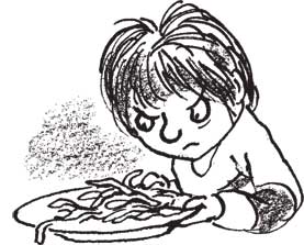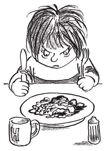 Ужасный Генри уставился на отвратительную, склизкую еду на тарелке. Липкая, мерзкая пакость. Гадкая, комкастая вонючка! Фу-у-у!