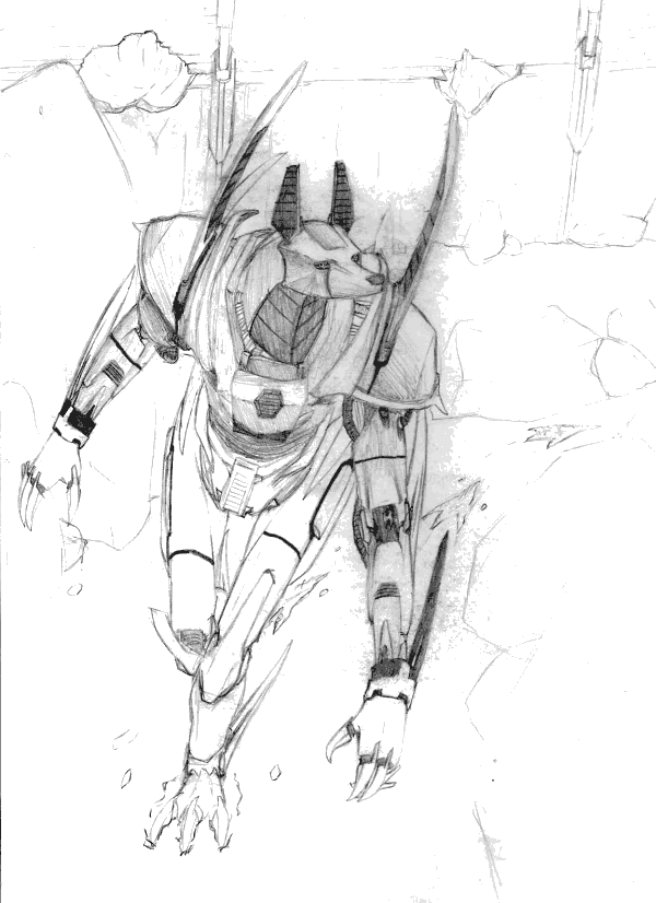 На прошлой неделе мне не удалось нарисовать целую главу; я сделала всего лишь четыре страницы, но они оказались потрясающими. Я изобразила гигантских роботов с головами животных, которых живущие в пустыне хайганы использовали в Битве песков. Эти роботы мне очень нравятся, но на их рисование уходит очень много времени, а если бы я рисовала их менее детально, то мне было бы стыдно перед великолепными художниками аниме. Битва продолжится по крайней мере две последующие главы, а то и все четыре, и это означает, что будет множество кадров с гигантскими боевыми роботами.