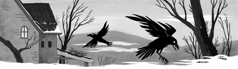 Два ворона… Уж не те ли это самые, что привиделись мне в ночи? Нужно обязательно проверить! Я надел ветровку, открыл дверь и вышел; сердце колотилось в груди. Снег почти весь растаял из-за ночной грозы, и только тут и там всё ещё лежало несколько грязных куч.