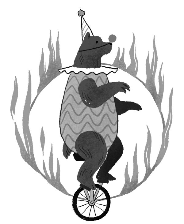 Я попытался ослабить хватку и понял, что ветви, на которые я опирался, гораздо крепче, чем я думал: будь я приличным эквилибристом, я смог бы удержаться на дереве, не пользуясь руками, но в тот момент я скорее чувствовал себя наряженным в костюм шута медведем на крошечном велосипеде, который вот-вот прыгнет прямо в пылающий обруч.