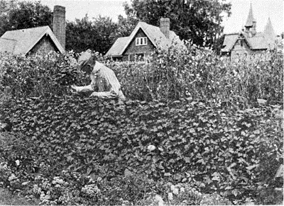 But the plums were the brilliant success, at least with reference to my own interior personal experience. Every plum tree meant something to me. A stub of a root and two scrawny plum branches would at any time arouse my imagination like the circus posters' appeal to a boy. In this Vermont garden which I adopted when it was about four years old, there were various plum trees, mostly of domestica varieties, growing on Americana roots. They had come from the Iowa State College, where they had been educated that way. They had been given those Americana roots, not primarily to dwarf them, but to insure them against damage from the cold winters. The tops had not been cut back, and the whole treatment was just such as would have been applied to standards. Later I saw the bad results of this treatment, for several of the trees blew over in high winds. From subsequent experience I feel sure that if they had been headed low at first, if they had been kept closely headed back and otherwise handled like real dwarfs, they would have lived to a greater age and would have made everybody happier.