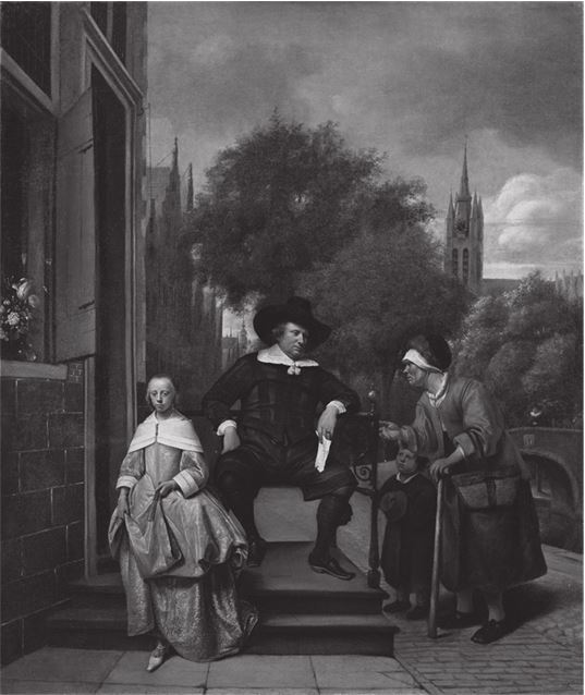 Потакание материальным желаниям и старая ортодоксия. «Жители Делфта» Яна Стена (дословно «Бюргер из Делфта»), которые смотрят на нас с обложки книги Шамы (рис. 1): сидящий грузный человек в черном, по одну руку которого дочь в одежде с золотым и серебряным шитьем, а по другую – нищенка в выцветших лохмотьях. Повсюду, от Флоренции до Амстердама, открытое оживление на лицах, изображенных в Санта-Тринита, исчезло. Бюргер безрадостно сидит в своем кресле, как будто пав духом из-за того, что обречен «быть предметом моральных понуканий, тянущих его в разные стороны» (снова Шама); он находится рядом со своей дочерью, но не смотрит на нее, повернулся в сторону женщины, но не к ней самой, он смотрит вниз, взгляд его рассеян. Что делать?