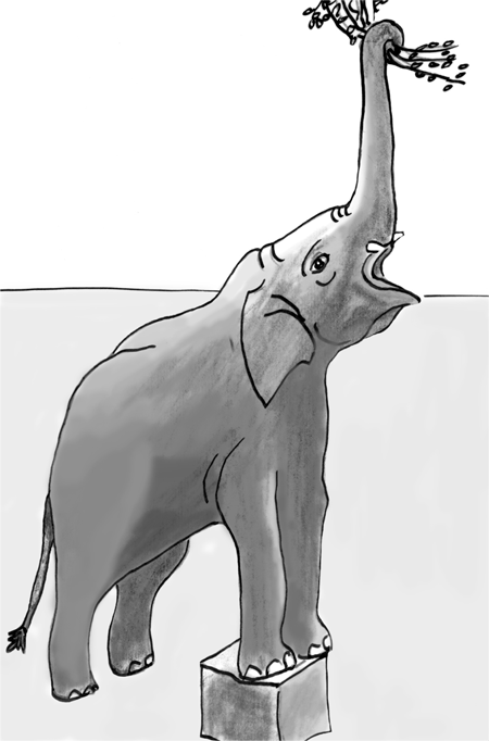 Во время своего посещения Национального зоопарка в Вашингтоне я встретился с Престоном Фёрдером и Дайаной Рейсс, которые показали мне, на что способен Кандула, молодой слон-самец, когда задача преподносится ему другим образом. Исследователи подвесили фрукты высоко над головой слона, вне его досягаемости. Они предложили слону несколько палок и прочный квадратный ящик. Кандула не обратил внимания на палку, но через некоторое время стал подталкивать ногами ящик. Он толкал его раз за разом строго по прямой линии, пока не установил точно под подвешенными фруктами. Тогда слон встал на ящик передними ногами, что позволило ему дотянуться хоботом до фруктов. Оказалось, что и слон может использовать орудия, если это правильные орудия.