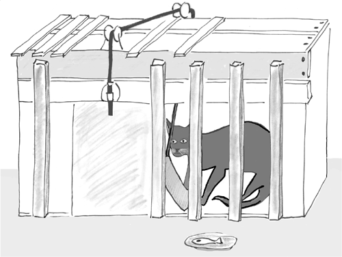 Неразумность пренебрежения этим советом была продемонстрирована при попытке повторить одно классическое исследование. Домашних кошек помещали в небольшие клетки, где они начинали бродить из стороны в сторону, отчаянно мяукать и тереться о стенки клетки. При этом кошки случайно задевали заслонку, открывающую дверцу, что позволяло им выбраться из клетки и получить причитающийся за это кусок рыбы. Исследователей впечатлило, что все испытуемые кошки вели себя одинаково – терлись о клетку, чему, по мнению исследователей, они научили кошек, награждая их рыбой. Этот эксперимент, первые осуществленный Эдвардом Торндайком в 1898 г., считался доказательством того, что даже кажущееся разумным поведение (освобождение из клетки) объясняется научением в ходе проб и ошибок. Это был триумф «закона эффекта», согласно которому поведение, ведущее к положительным результатам, повторяется{19}.