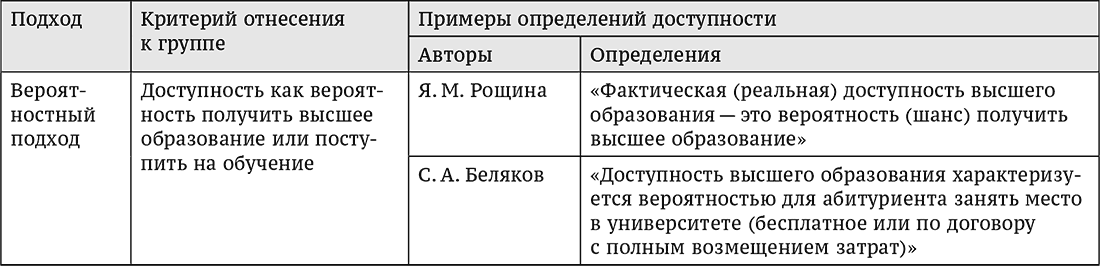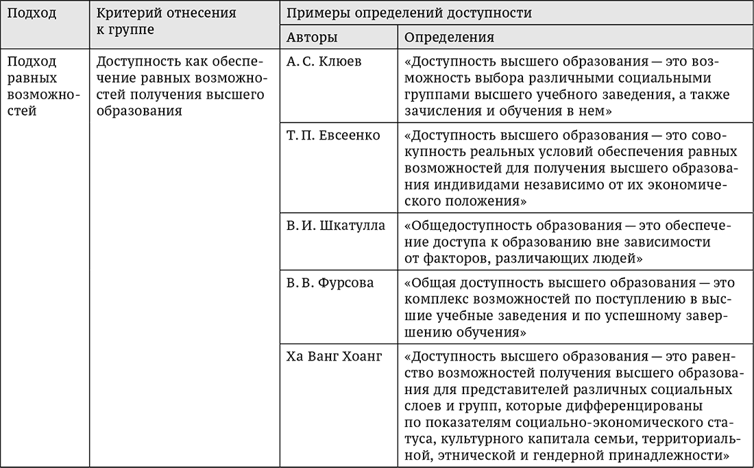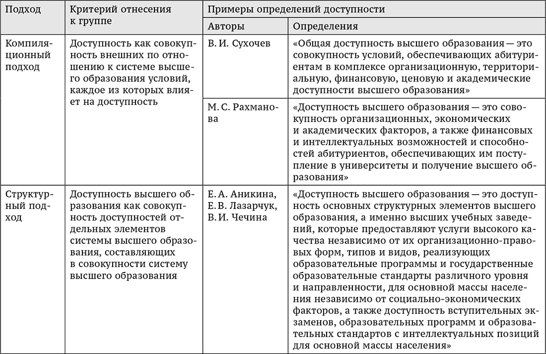 Таблица 1. Подходы к определению доступности высшего образования[44]