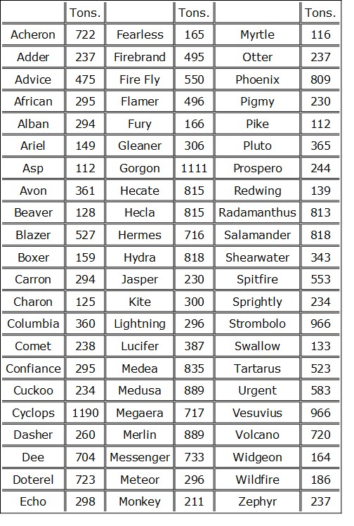 The number of sea-going steam vessels in England is two hundred and eighty-two, while in the United States they have not more than ten at the outside calculation. In the size of our vessels also we are far superior to them. I here insert a table, shewing the dimensions of our largest vessels, as given in the Report to the House of Commons, and another of the largest American vessels collected from the Report of Mr Levi Woodbury to Congress.