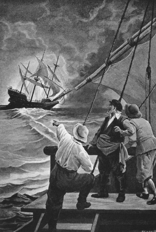 Наконец он подошел почти вплотную, и, прежде чем чужак по воле ветра переменил курс, с «Тер Шиллинга» успели разглядеть людей на палубе и шапку пены у носа, расслышать хриплый свист боцманских дудок, скрип дерева и жалобные стоны гнущихся мачт. Затем мрак опять сгустился, и видение сгинуло, будто его не было.