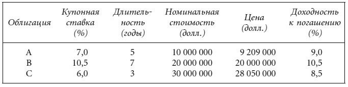 Рассмотрим портфель, в который входят три следующие облигации: