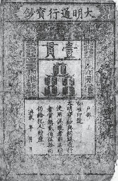 Рис. 1.10. Бумажный гуань, император Чжу Юаньчжан, Китай, 1368–1399 гг. ANS 0000.999.52979. Воспроизводится с разрешения Американского нумизматического общества.