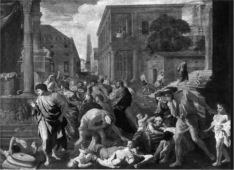 С аналогичной целью художник-классицист Никола Пуссен (1594–1665) изобразил крыс на своем полотне «Чума в Ашдоде» (рис. 4.1). Первая книга Царств Ветхого Завета рассказывает, как язычники филистимляне торжественно установили Ковчег Завета в храме своего бога Дагона, тем самым утвердив его превосходство над Богом израильтян. И тот покарал филистимлян, наслав на них чуму и разрушив их город. Чтобы усилить ужас происходящего на картине, Пуссен вписал на улицы обреченного Ашдода крыс. Живописец XVII столетия знал, что для его современников массовый выход крыс на поверхность был знакомым предвестием чумы и надвигающихся бедствий.