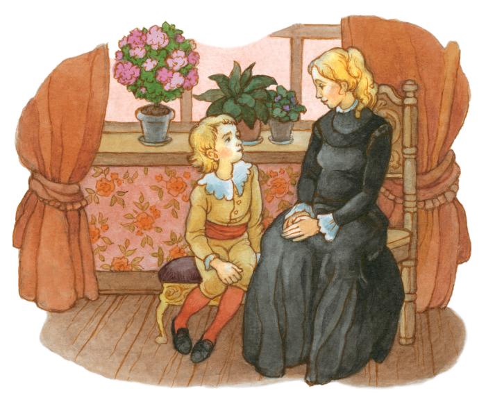 Когда он подрос, у него появился ряд милых и оригинальных ухваток, которые очень нравились всем окружающим. Для матери он был таким близким другом, что она и не искала себе других. Они обыкновенно вместе гуляли, болтали и вместе играли. С самых ранних лет он выучился читать, а потом, лежа по вечерам на ковре перед камином, читал вслух то сказки, то толстые книги, которые читают взрослые, а то и газеты.
