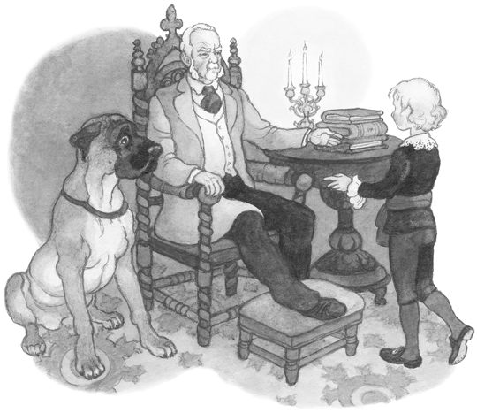 Все это было очень странно, но Цедрик был уверен, что мама объяснит ему, в чем дело, и потому он предоставил Мэри ворчать, сколько ей угодно, не расспрашивая ее ни о чем. Окончив свой туалет, он побежал в гостиную, где застал высокого, худого старого господина с резкими чертами лица, сидевшего в кресле. Недалеко от него стояла мама, взволнованная и бледная. Цедрик сразу заметил слезы на ее глазах.