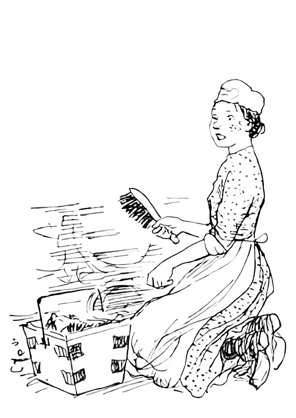Но Марта совсем не рассердилась, а только оглянулась назад, не выпуская из рук щётку, и весело рассмеялась.