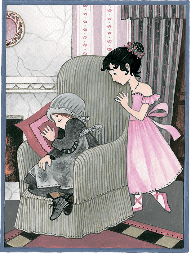 Она присела только на минутку, наслаждаясь теплом и отдыхом, и вдруг – какой ужас! – ее застали спящей! Около нее, точно розовая бабочка, сидит мисс Кру и смотрит на нее!