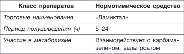 Таблица 3.3. Терапевтический профиль ламотриджина