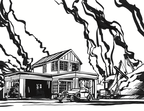– О, да, конечно! – быстро согласился Уилсон и направился в сторону маленькой конторы, мгновенно смешавшись с цементным цветом стен. Белая зольная пыль покрывала его темный костюм и светлые волосы, как, собственно, и все вокруг, кроме его жены, которая в этот момент подошла очень близко к Тому.