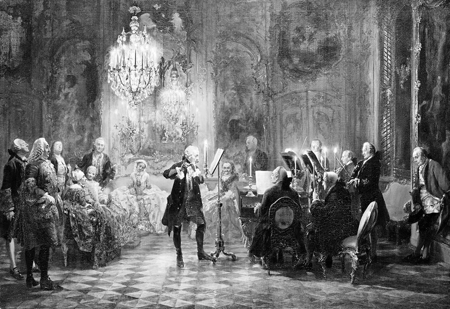 Адольф фон Менцель. Фридрих Великий играет на флейте в Сан-Суси