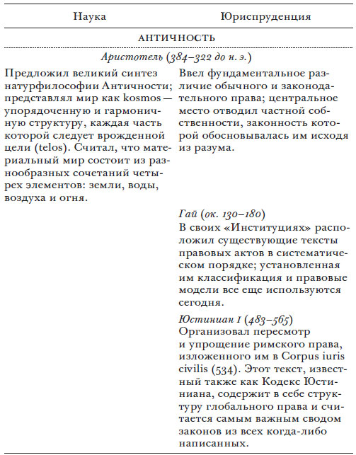Однако прежде чем искать средство, способное изменить сложившийся порядок, необходимо понять, как он возник. Было бы неверно думать, что сложившаяся недальновидная экономическая и политическая система сама потерпит крушение, хотя, как мы покажем, она не была и вполне спланирована. Как было сказано в предисловии, основной тезис этой книги состоит в том, что юриспруденция (теория права) вместе с наукой оказали существенное влияние на формирование современной механистической картины мира. Поэтому и юристы, и ученые должны взять на себя определенную долю ответственности за то состояние, в котором находится сейчас мир, так как именно результаты их деятельности в эпоху модерна начиная, по крайней мере, с XVII века наложили свой отпечаток на присущие нам сегодня материалистические установки, сформировали экстрактивный склад ума, свойственный индустриальной эпохе; и эти обстоятельства лежат в основании сегодняшнего всемирного кризиса. В ходе исследования взаимных отношений юриспруденции и науки мы обнаруживаем, что юриспруденция демонстрирует ряд удивительных параллелей с естественными науками в том, что касается ее истории и концептуальной структуры. Мы также увидим, что их обоюдное влияние развивалось с течением времени подобно отношениям между законами природы и законами человеческого общества.