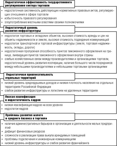 Проблемы развития торговой отрасли представлены в виде пяти блоков (рис. 1.2).