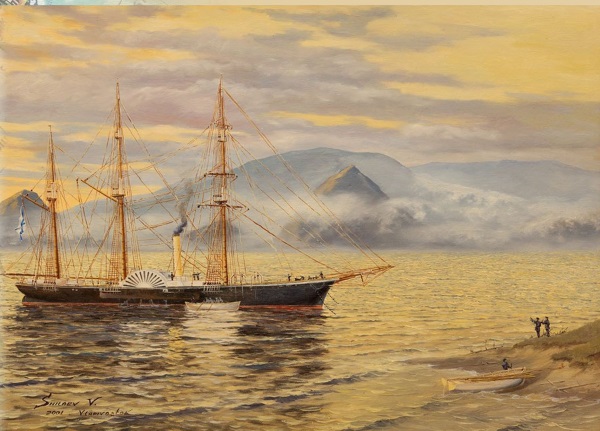 Илл.1 Пароходо-корвет «Америка». Художник В. Шиляев.